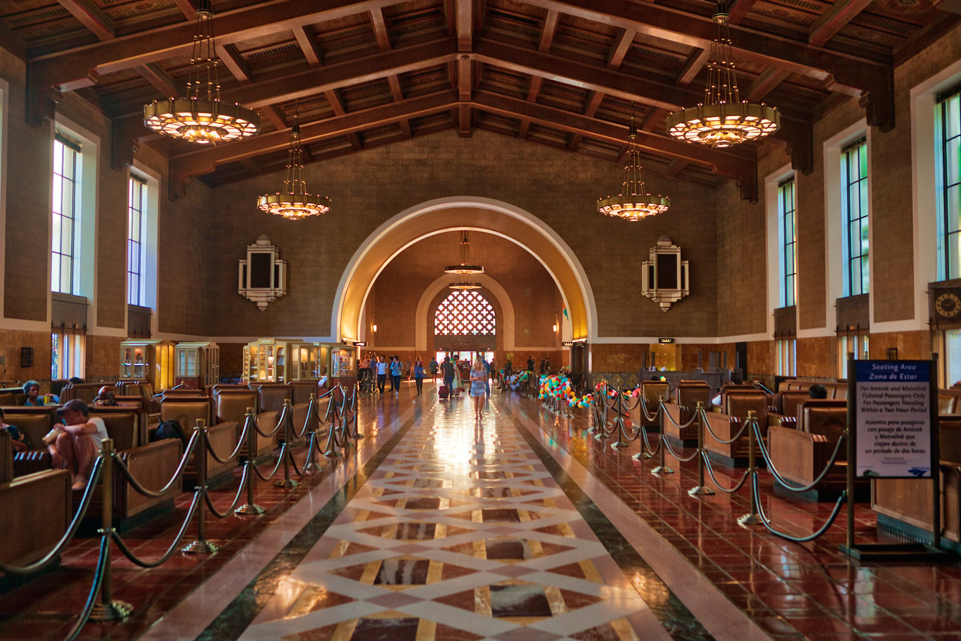 The beautiful Old Ticketing Hall at Union Station in Los Angeles, California. Twelve exposure panorama, handheld. Photography by Ming Lo